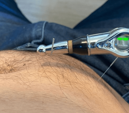 Neste caso o estímulo energético ou nervoso das agulhas foi realizado com a caneta eletrônica chamada meridian pen .
