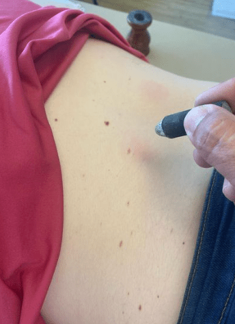 Neste paciente a moxa (bastão de artemísia com o carvão) foi utilizada no ponto B23, para ativar a função renal e amenizar a sensação de frio que o mesmo referiu na consulta.